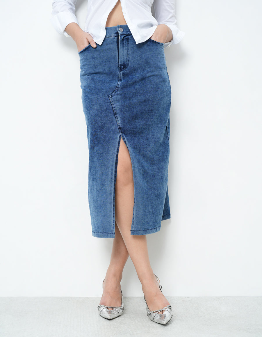 Denim Skirt With Front Slit